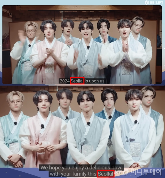 영상 속에서 엔하이픈의 멤버 7명은 다양한 색감의 한복을 입고 설날 인사를 전했다. 영상에 삽입된 영문 자막에는 설날을 'Seollal'로 표기했다.