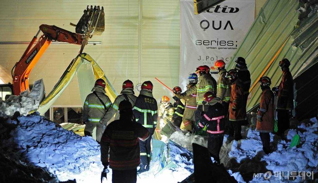 무너진 건물은 샌드위치 패널로 마감된 조립식 건물이었다. 사고 전날 내린 폭설로 건물 지붕이 무게를 견디지 못하고 무너진 것이다.