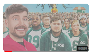 도널드슨의 콘텐츠 중 가장 많은 조회수를 기록한 건 한국 드라마 '오징어 게임'을 실사판으로 제작한 작품이다. 이 콘텐츠는 5억회 이상의 조회수를 낳았다.
