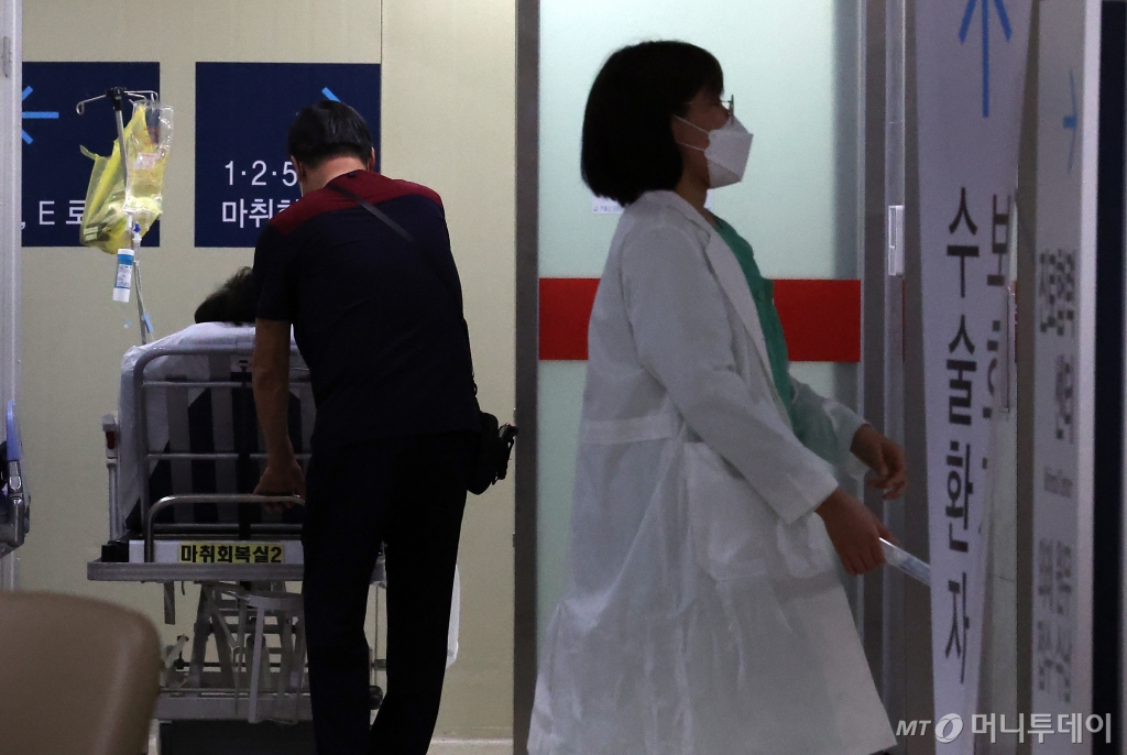 ![[서울=뉴시스] 김명년 기자 = 정부가 전공의 이탈로 인한 의료 공백을 줄이기 위해 간호사에게 의사 업무 일부를 맡기는 '간호사 업무 관련 시범사업'이 시작된 27일 오후 서울 시내 한 대형병원에서 의료진이 발걸음을 옮기고 있다. 2024.02.27. kmn@newsis.com /사진=김명년](https://thumb.mt.co.kr/cdn-cgi/image/f=avif/21/2024/02/2024022809142298110_1.jpg)