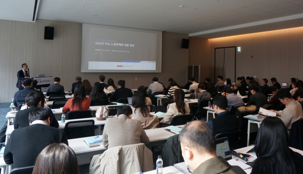 권창영 법무법인 지평 변호사(사법연수원 28기)가 19일 서울 중구 그랜드센트럴에서 열린 법무법인 지평 노동그룹세미나에서 '2023년 주요 노동판례와 대응방안'의 발표를 맡아 이같이 말했다. 이날 행사에는 기업 법무·노무 담당자 80여명이 참석했다.