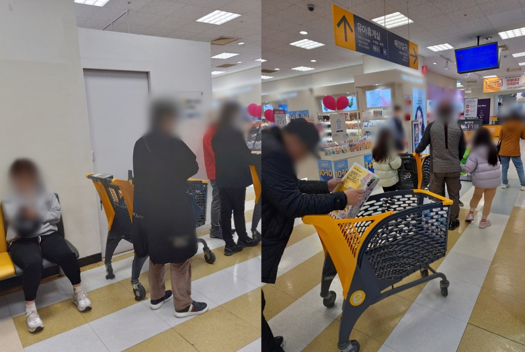 31일 아침 9시50분 서울 용산구 이마트 매장 앞. 개장 10분 전부터 30여명의 사람들이 몰려들었다. 다음달 4일까지 진행되는 농수산물 초특가 할인 제품을 구매하려는 인파다. 이들은 매장이 열리기를 기다리는 내내 제품 전단지에서 할인가를 비교하고 휴대폰에 구매 목록을 정리하면서 '경쟁자들'과 눈치싸움을 벌였다.