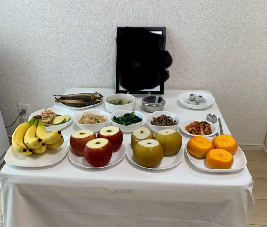 A씨가 공개한 사진에는 간소하게 차려진 제사상 모습이 담겼다. A씨 일본인 아내는 상 위에 바나나와 사과, 배, 감, 각종 나물, 김치, 생선, 국, 곶감 등 음식을 올렸다.