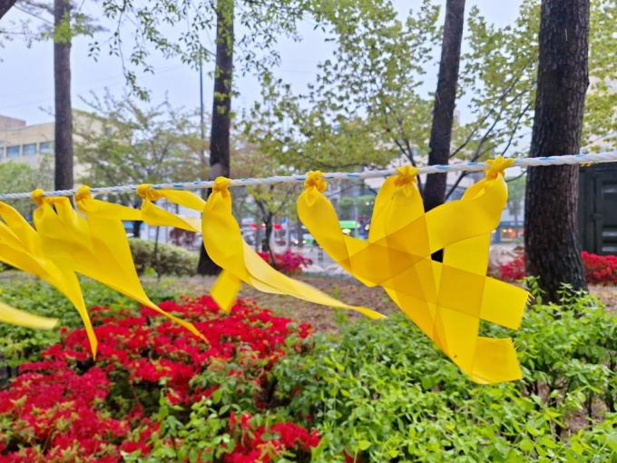 은평구 주민 박모씨는 현수막을 멍하니 한참 동안 바라봤다. 그는 "노란색을 보니까 그날이 또 왔구나 하는 생각이 든다"며 "10년이 지나도 먹먹하다"고 말했다.