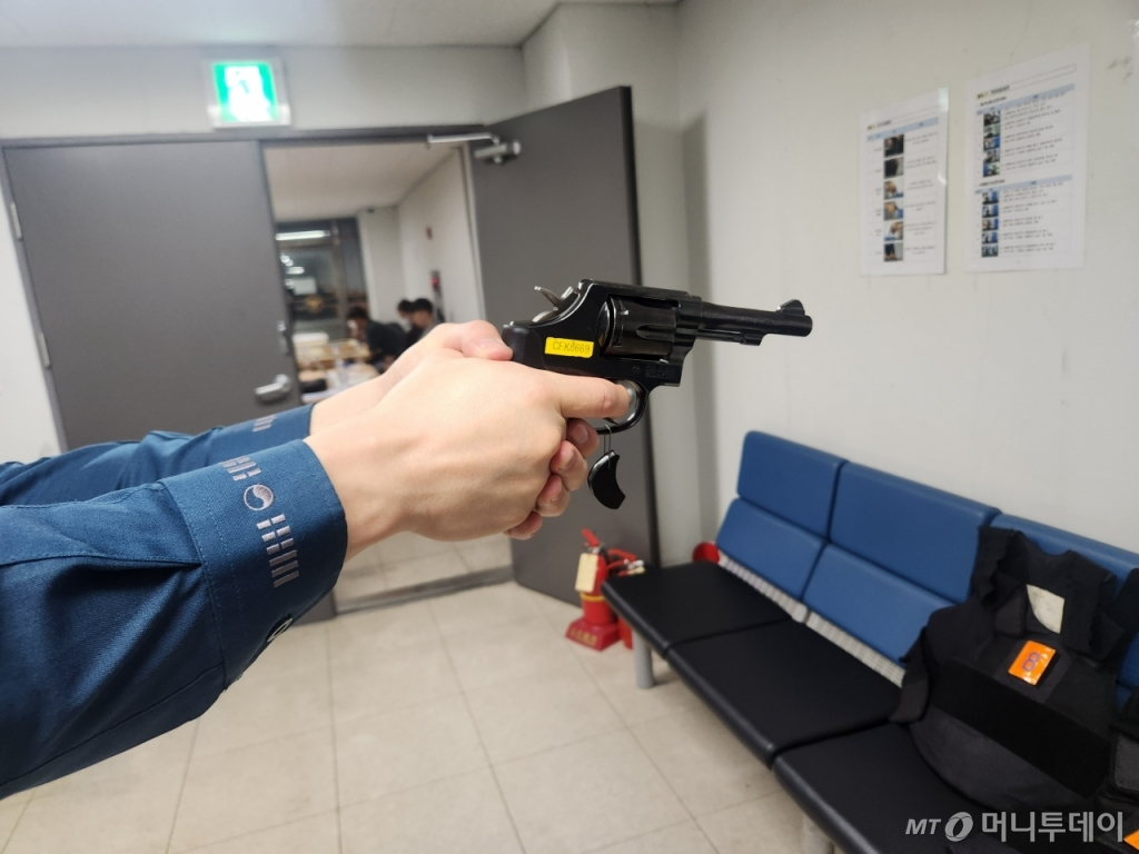 이날은 칼이나 사제 총기를 지닌 난동범을 제압하는 상황을 가정해 사격훈련이 진행됐다. 흉기의 특성에 따라 사격 거리도 달리했다. 칼을 소지한 난동범은 10m 거리에서, 사제 총을 지닌 난동범은 15m 거리에서 사격하도록 훈련을 구성했다.