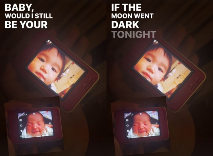 사진에 적힌 가사는 '태양이 빛나길 거부해도 난 여전히 너의 사랑일까? 내가 거기 있어 주길 너는 원할까? 오늘 밤 달이 어둠 속으로 사라진다면'(If the sun refused to shine, Baby would I still your lover? Would you want me there? If the moon went dark tonigt)이다.