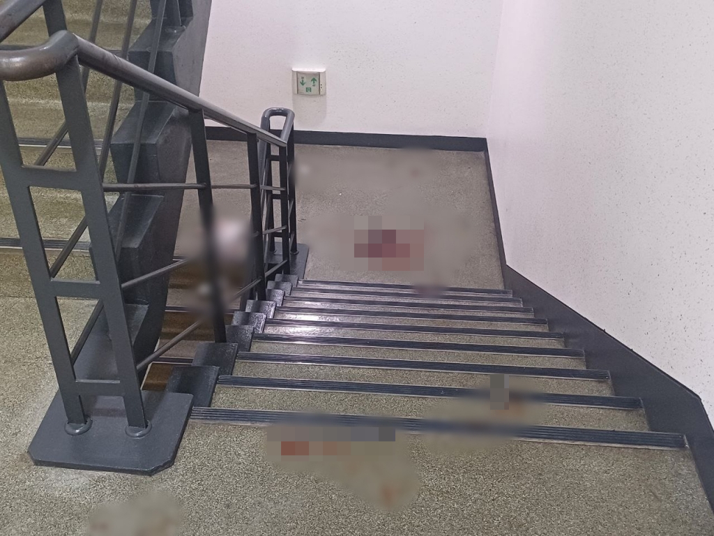 변을 피하기 위한 피해자들 흔적도 남았다. 쓰러진 B씨는 4층 엘리베이터를 통해 병원으로 이송됐는데 건물 3층과 4층 사이 다수 혈흔이 발견됐다. 혈흔 옆에는 지혈 등 응급 처치에 쓰인 것으로 보이는 거즈와 붕대 등이 있었다. B씨 딸은 6층에서 발견됐다.