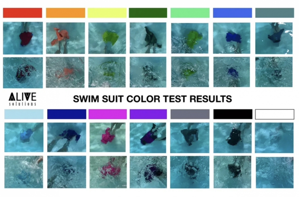 그 결과 밝은 바닥의 수영장에선 '네온 핑크'와 '네온 오렌지' 색상이 가장 눈에 띄었다. 반면 연한 파란색, 흰색 수영복은 물속에서 잘 보이지 않았다.