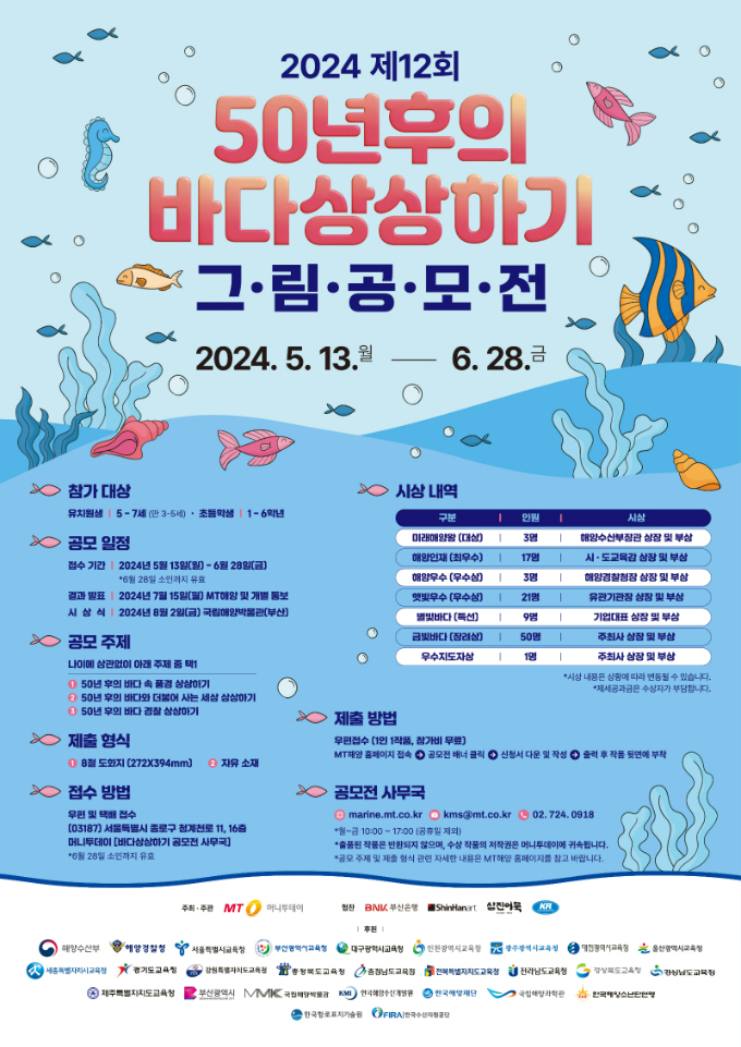 공모전 심사결과는 오는 15일 MT해양 사이트(marine.mt.co.kr)를 통해 공개된다. 수상자들에게도 개별 통보될 예정이다. 시상식은 오는 8월 2일(금) 오후 3시 부산 국립해양박물관 대강당에서 진행된다.