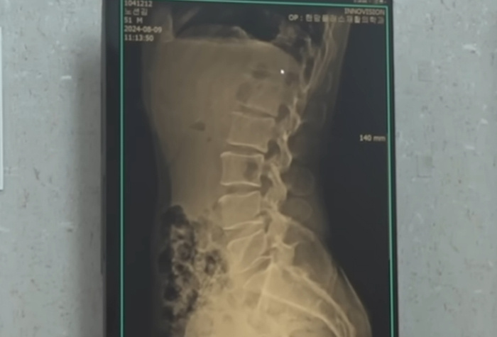 재할의학 전문의 김창원 대표원장은 "허리가 완벽한 C자를 그리고 있다. 근육이 못 받쳐주면 사람이 일자로 서게 되는데 이 나이(50대)에 이 정도 곡선을 그리는 사람은 거의 없다"고 밝혔다.