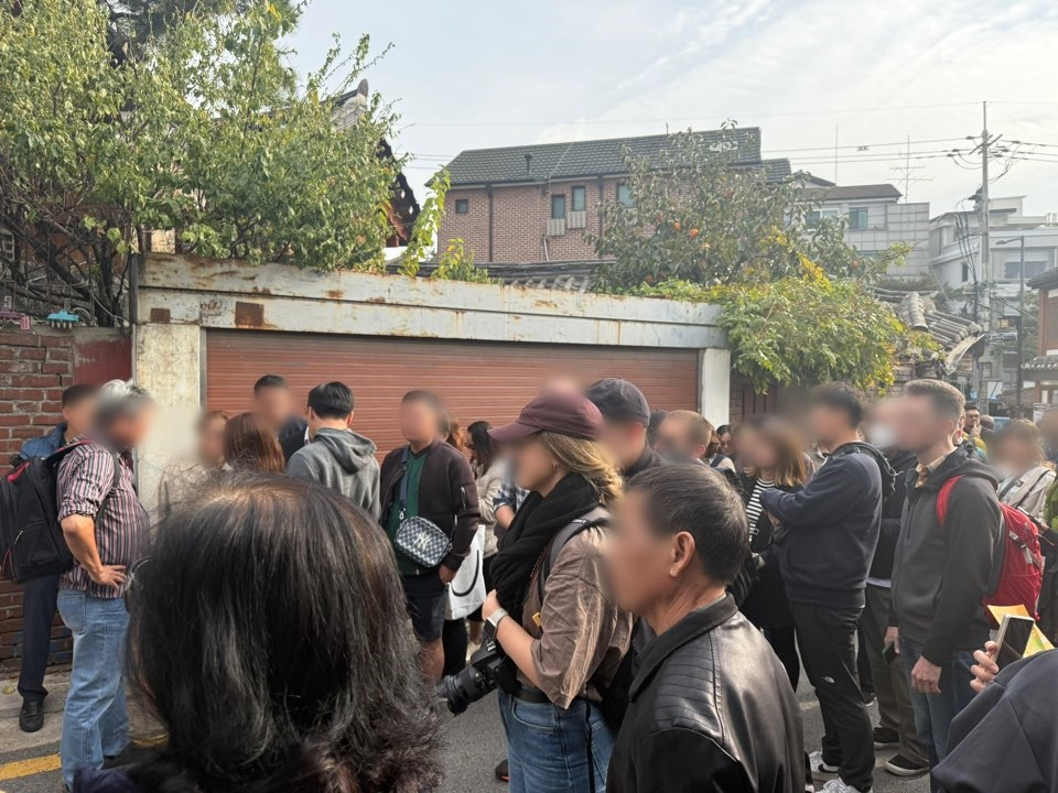 # 지난 4일 오전 9시50분 서울 종로구 삼청동 북촌한옥마을 초입. 30분 전부터 외국인 관광객이 하나둘 모여들더니 순식간에 관광객 180여명이 골목 앞으로 몰렸다.