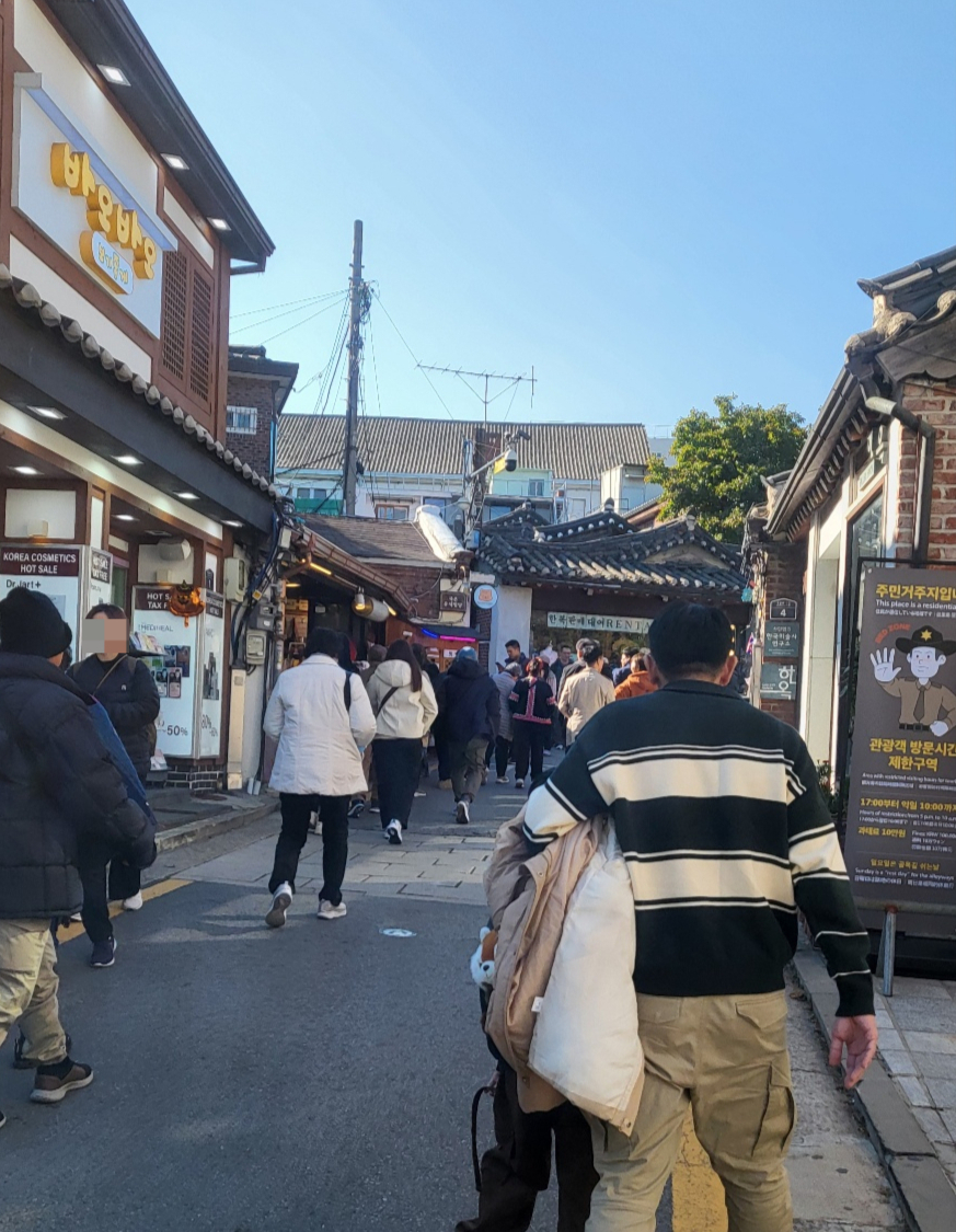 지난 6일 오후 2시, 서울 종로구 북촌 한옥마을. 깃발을 든 단체 관광객과 한복을 곱게 차려입은 외국인 관광객들이 한옥을 구경하느라 여념이 없었다. 한옥들이 길게 늘어선 골목을 배경으로 인증샷을 찍는 이들도 쉽게 찾아볼 수 있었다.