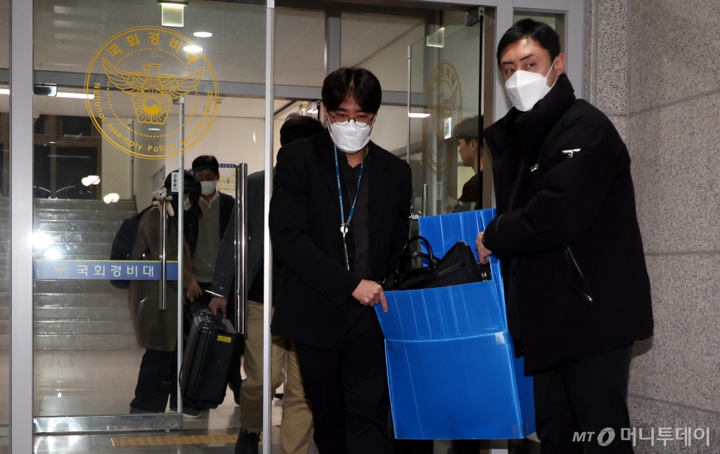 ![[서울=뉴시스] 조성봉 기자 = 12·3 비상계엄 사태를 수사하는 국가수사본부 비상계엄 특별수사단이 11일 서울 여의도 국회에서 국회경비대에서 경비대장실과 CCTV 기록 등 압수수색을 마치고 차량으로 이동하고 있다.2024.12.11.suncho21@newsis.com /사진=조성봉](https://thumb.mt.co.kr/cdn-cgi/image/f=avif/21/2024/12/2024121715214485132_1.jpg)