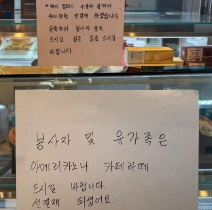 다만 한 자원봉사자가 결제 이튿날 카페를 찾아 "제이컴퍼니 이름으로 커피를 마시러 왔다"고 하자, 카페 측은 "이미 100만원어치 판매가 다 끝났다"고 안내했다. 이를 알게 된 유튜버는 카페에 항의했고, 카페 측은 뒤늦게 실수였다며 300만원어치를 환불해주겠다고 한 것으로 전해졌다.