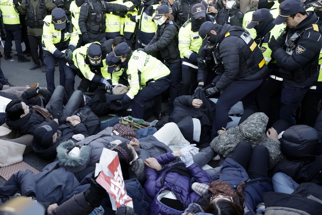 서울 한남동 윤석열 대통령 관저 앞 도로를 점거한 보수단체 회원 30여명을 경찰이 강제해산했다. 이곳은 집회 장소로 신고하지 않은 곳이었다.