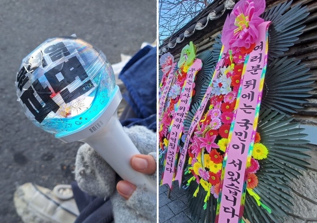 윤 대통령의 체포영장 집행을 앞두고 주말 이른 아침부터 한남동 관저 앞에는 지지자들과 반대자들의 집회가 동시에 열렸다. 중장년층 지지자들은 태극기나 화환 등을 준비한 반면 윤 대통령 체포를 요구하는 2030 집회 참가자들은 응원봉을 들고 왔다.