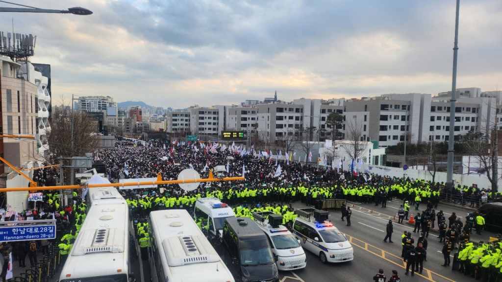 한남동 관저 앞은 주말을 맞아 집회에 참가하려는 시민들로 붐볐다. 일부 시민들은 안전을 위해 직접 질서유지선을 밀고 일대 10개의 모든 차선을 확보하기도 했다. 공간이 좀 더 여유롭게 되자 시민들도 자연스럽게 옆으로 이동했다.