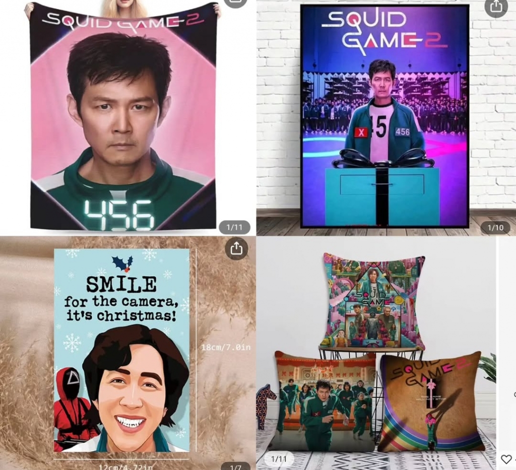 현재 테무와 알리익스프레스 등에서 판매되는 제품 원산지 대부분은 중국인 것으로 전해졌다. 일부 외신들도 오징어게임 관련 상품 중 일부는 중국 광둥성과 선전, 안후이성 기업들이 제작·판매한 것이라고 보도한 바 있다.