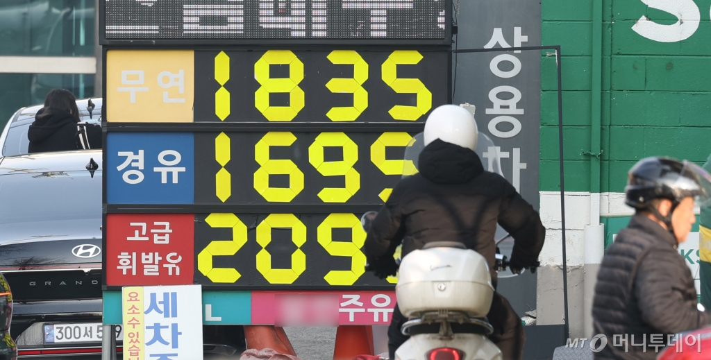 ![[서울=뉴시스] 추상철 기자 = 21일 오후 서울시내 한 주유소 가격 안내판에 휘발유 가격이 1835원을 나타내고 있다. 서울 주유소 휘발유 평균 가격이 리터당 1800.74원으로 1년 2개월만에 1800원대를 넘어선 것으로 나타났다. 2025.01.21. scchoo@newsis.com /사진=추상철](https://thumb.mt.co.kr/cdn-cgi/image/f=avif/21/2025/01/2025012508083062824_1.jpg)