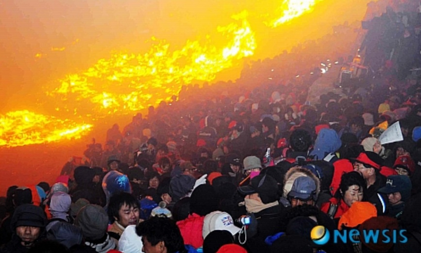 행사 관계자들이 억새에 불을 붙이고 약 10분 후, 정상 인근의 골짜기에서 시작된 것으로 추정되는 바람이 불기 시작했다. 문제는 이 바람이 불길 방향에서 관광객 쪽으로 오는 역풍(逆風)이었던 것.