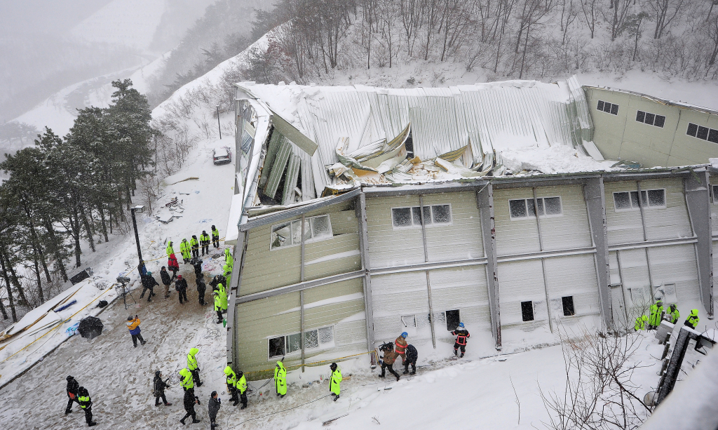 지붕이 무너진 건 당시 1㎡ 당 114㎏의 적설이 원인이 됐는데 강도가 떨어지는 자재가 사용돼 눈 무게를 버티지 못한 것으로 파악됐다. 부실 자재를 썼을 뿐만 아니라 부실 시공도 원인으로 지목됐다.