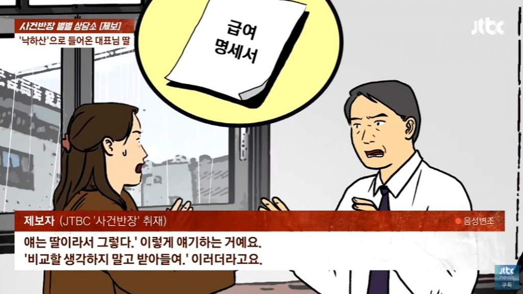 젊은 신입 직원이 사장 딸이란 이유로 20년 경력자와 같은 연봉을 받았다는 사연이 소개돼 누리꾼들의 공분을 샀다.