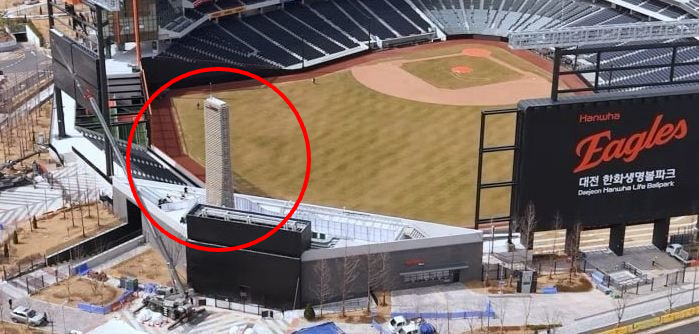 25일 뉴시스에 따르면 대전시는 지난 21일 한화생명 볼파크에 설치된 63빌딩 조형물을 불법 공작물로 보고 한화이글스에 철거 명령을 내렸다.
