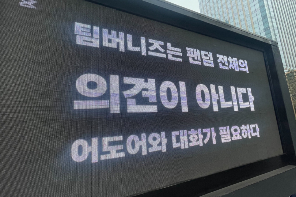 뉴진스 팬덤이 민희진 전 어도어 대표와 멤버들 부모를 저격한 듯한 메시지를 담은 트럭 시위를 벌였다.
