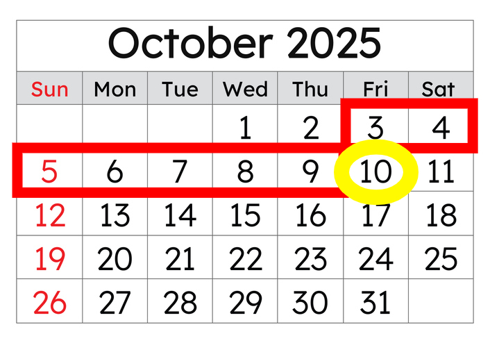 우주항공청 월력요항에 따르면 오는 10월 추석은 3일 개천절, 4일 토요일, 5~7일 추석, 8일 대체공휴일, 9일 한글날까지 총 7일 간의 황금연휴가 이어진다. 만약 여기에 10일(금요일)이 임시공휴일로 지정되면 11~12일 주말을 더해 열흘 간의 연휴가 가능해진다.