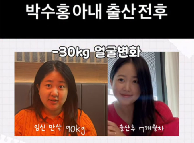 이후 박수홍은 체중 90㎏였던 만삭 때와 출산 후 7개월 차 아내 모습을 비교하며 "박수홍 아내 출산 전후. 30㎏ 감량 얼굴 변화"라는 글을 덧붙이기도 했다. 과거 김다예는 얼굴이 부어 있었으나 출산 후 한결 날렵해진 모습이라 눈길을 끈다.