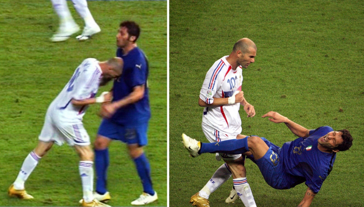 은퇴 경기를 10분 남겼을 무렵, 프랑스 팀 주장 지단은 갑작스럽게 이탈리아 선수 마르코 마테라치의 가슴을 박치기로 공격해 쓰러뜨렸다. 그는 심판에게 레드카드를 받고 퇴장당했다.