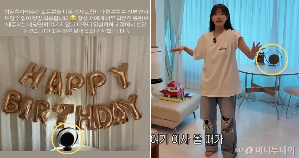 앞서 이미주는 지난 11일 자신의 유튜브 채널을 통해 자신의 집을 최초로 공개했다. 해당 영상에는 흰색 시폰 커튼이 쳐진 거실 창가에 놓인 흰색 테이블 위에 검은색 조명을 올려져 있다. 이는 이진영이 게재한 테이블 위 조명과 유사한 디자인으로 눈길을 끌었다.