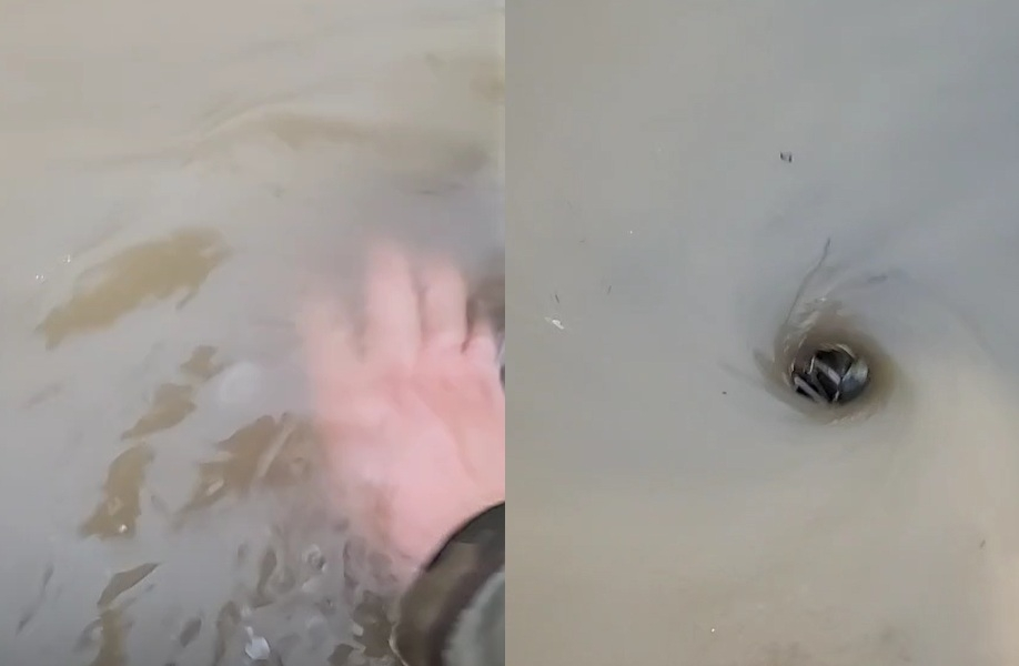 A씨는 "회오리 치는 거 보니까 여기가 물 빠져나가는 곳 같다"며 흙탕물 속에 맨손을 집어넣은 뒤 휘저었다. A씨 손에는 낙엽과 쓰레기가 집혀 나왔다.
