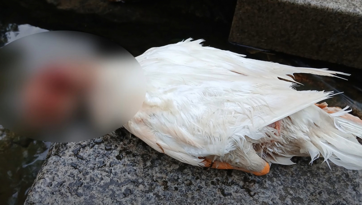 경기 안양 삼성천에 사는 오리 가족 중 한 마리가 지난해 돌팔매질로 세상을 떠난 가운데 또 다른 한 마리도 둔기에 맞은 듯한 상처와 함께 사체로 발견됐다.