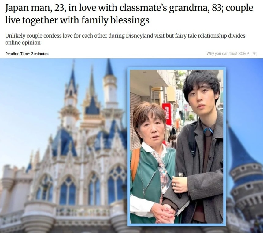 30일 홍콩 사우스차이나모닝포스트(SCMP)에 따르면 23세 코후와 83세 아이코의 관계는 양가에서 지지를 받고 있다. 이들은 길거리 인터뷰 영상으로 SNS(소셜 미디어)에서 큰 화제를 모았다.