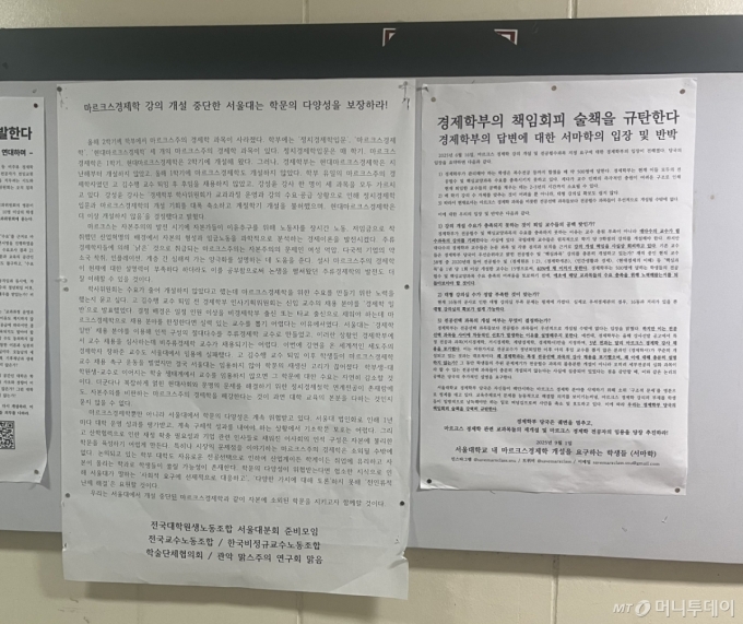 서울대학교의 '마르크스 경제학' 강의는 1989년 김수행 교수(2015년 작고)가 부임하면서 개설됐다. 김 교수가 퇴임한 2008년 이후에도 강사의 강의로 운영됐지만 지난해 폐강이 결정돼 30여년의 역사가 막을 내렸다. 당시 학교 측은 강의의 '수요·공급상황'을 고려, 해당 과목들을 개설하지 않기로 했다고 밝혔다.
