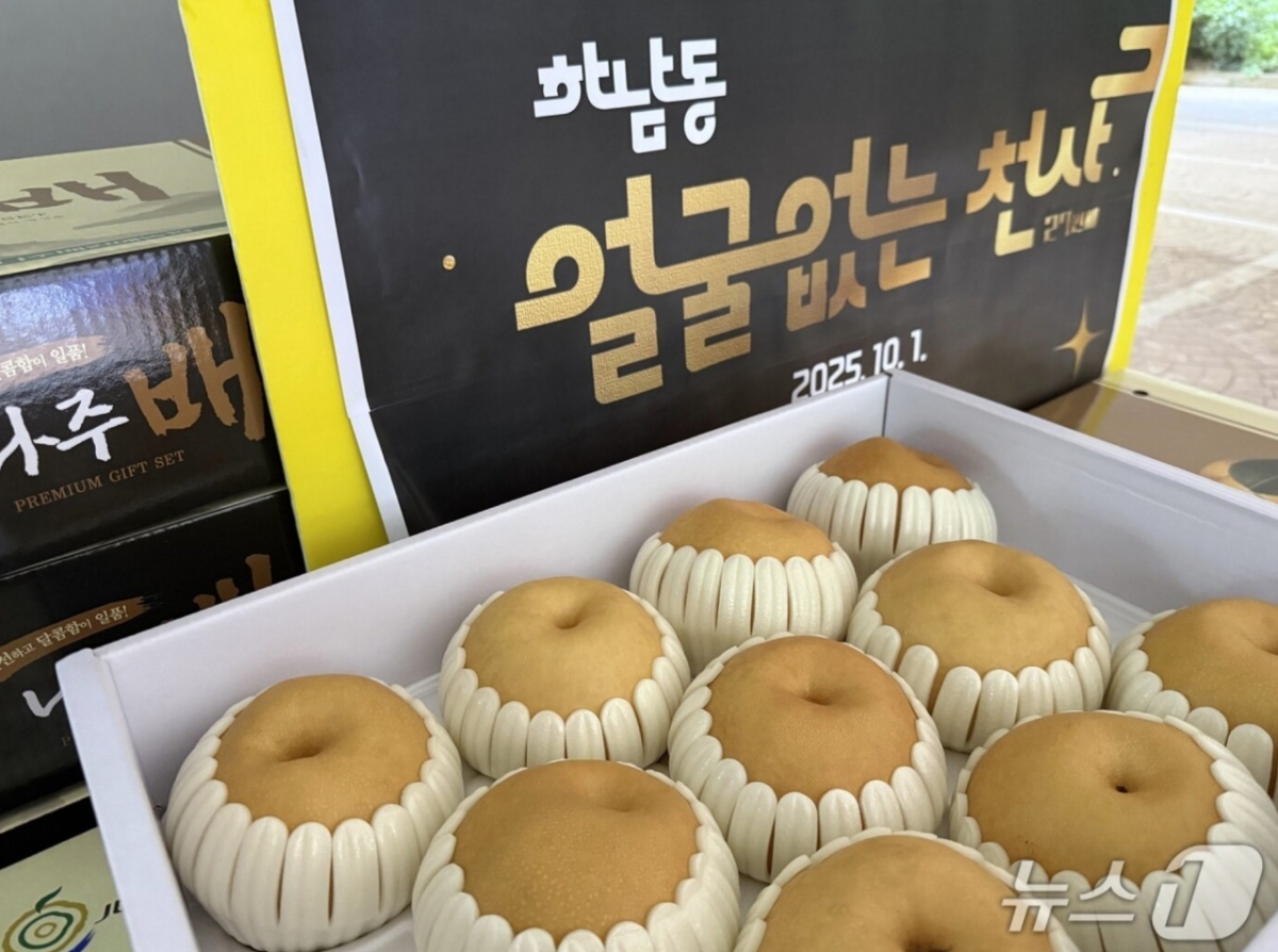 2일 뉴스1에 따르면 전날 오전 하남동 행정복지센터 주차장에 익명의 기부자가 배 35상자를 두고 갔다.