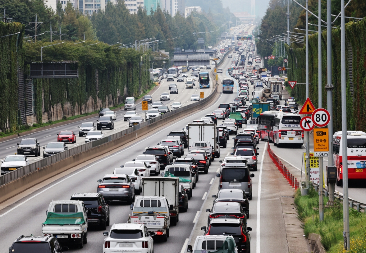 이날 한국도로공사에 따르면 오전 11시 기준 승용차로 서울 요금소를 출발해 전국 주요 도시까지 걸리는 시간은 △ 부산 6시간 50분 △ 울산 6시간 30분 △ 광주 6시간 △ 대구 5시간 50분 △ 강릉 △ 4시간 △ 대전 3시간 40분 등이다.