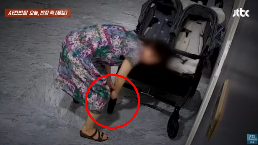 이상하다고 느낀 A씨는 현관문 앞을 녹화할 수 있는 CCTV를 설치했다. 이후 촬영된 영상을 확인하던 중 낯선 중년 여성이 공구를 들고 유모차 바퀴를 훼손하는 장면을 보게 됐다.