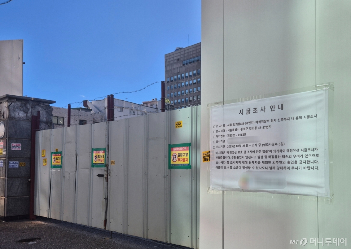 구청에 따르면 문화재가 다수 출토되는 종로구 특성상 신축 공사 시 문화재 발굴 조사를 필수적으로 진행해야 한다. 시굴 조사는 전체 부지의 10%에 해당하는 면적에서 문화재 흔적 등이 있는지 살피는 절차다.