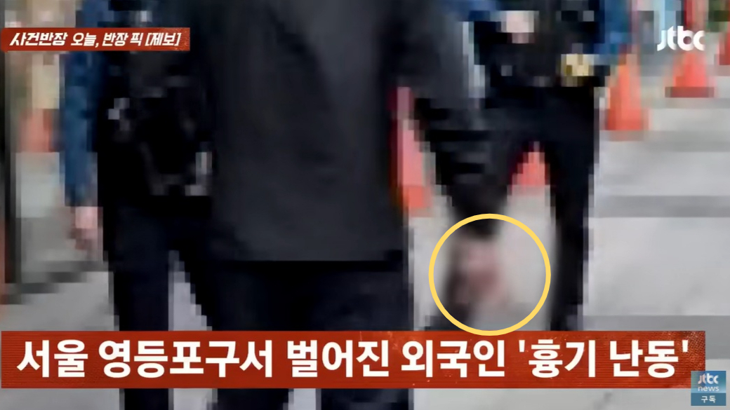 현장에 출동한 경찰을 본 외국인 남성은 더욱 흥분해 양손에 각각 흉기, 삼단봉을 들었다. 경찰과 대치한 상황에서 남성은 흉기와 삼단봉을 위협적으로 휘둘렀다.