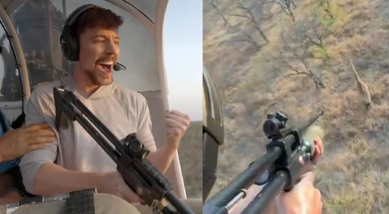 해당 영상에서 미스터 비스트는 헬리콥터를 탄 채 달아나는 기린을 향해 고출력 공기총을 발사했다. 그는 기린이 총에 맞자 환호했다.