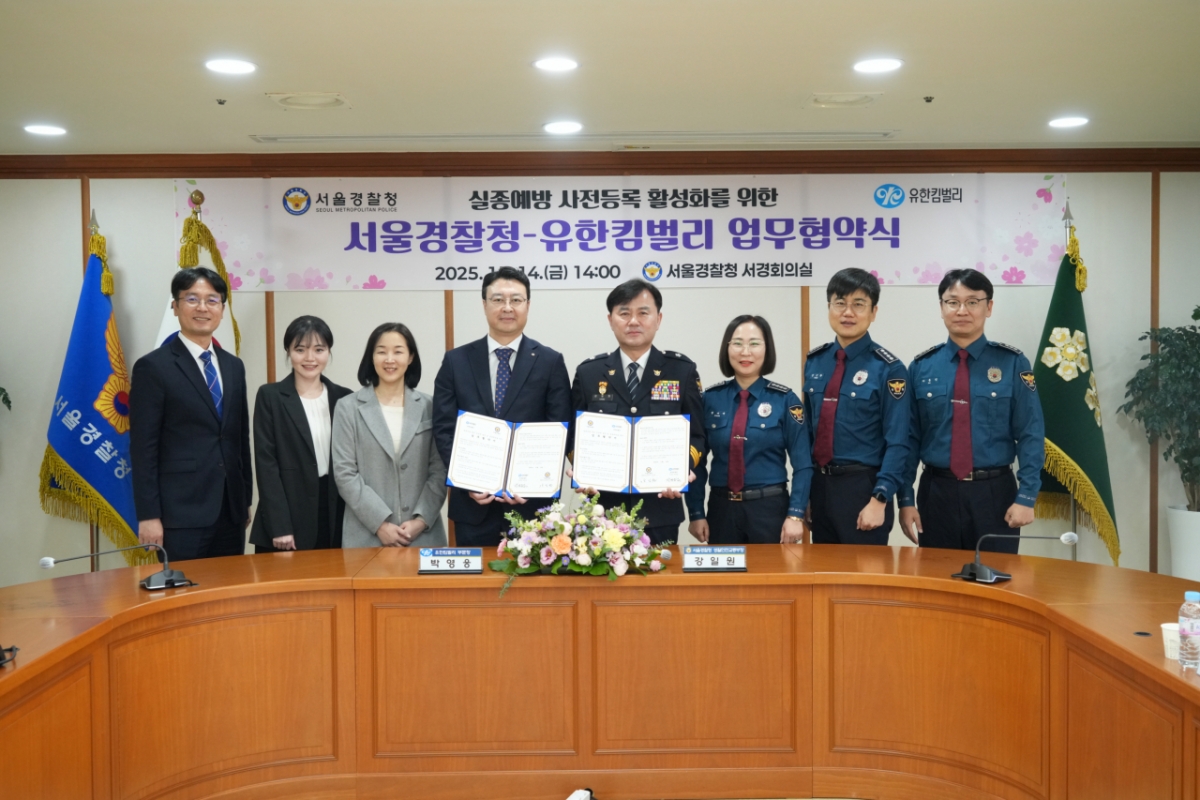 서울경찰청은 유한킴벌리와 '실종예방 사전등록 활성화를 위한 업무협약'을 체결했다고 14일 밝혔다.