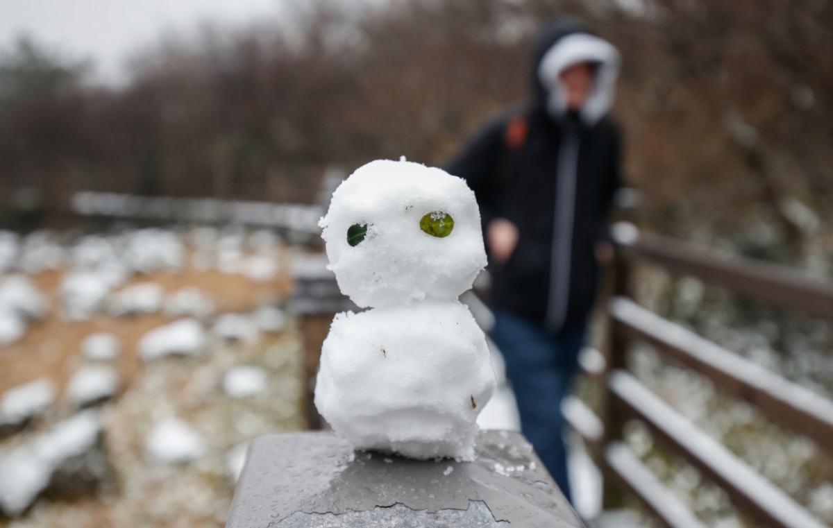 제주지방기상청에 따르면 이날 오전 6시 기준 제주도 산지 일 최저기온이 영하권으로 떨어지면서 곳곳에서 눈이 관측됐다.