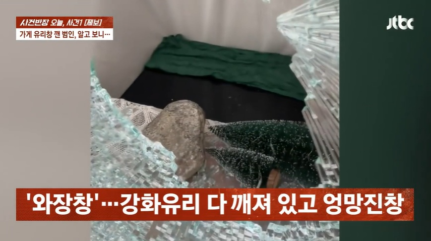A씨는 "어느 날 가게 전면 유리에 커다란 구멍이 뚫려 있었다"며 "유리 안쪽에는 큰 돌이 떨어져 있었는데, 쉽게 깨지지 않는 강화유리였기 때문에 곧바로 경찰에 신고했다"고 밝혔다.