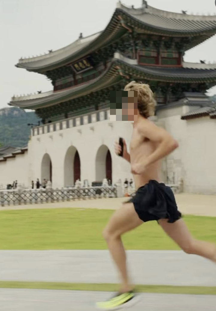 서울 광화문에서 상의를 탈의한 채 달리기를 하는 외국인이 포착돼 논란이다.