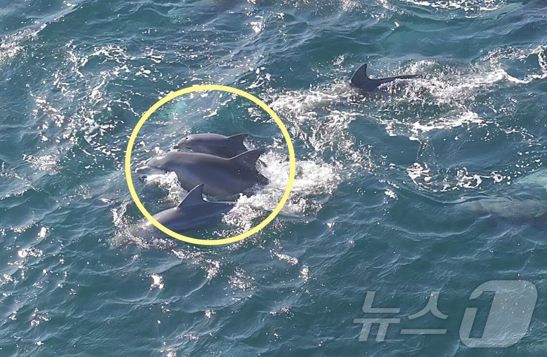 다큐제주 오승목 감독은 "지난 11월12일 제주시 구좌읍 종달리 앞바다에서 춘삼이와 함께 유영하는 배냇주름이 선명한 새끼 돌고래를 발견했다"고 설명했다.