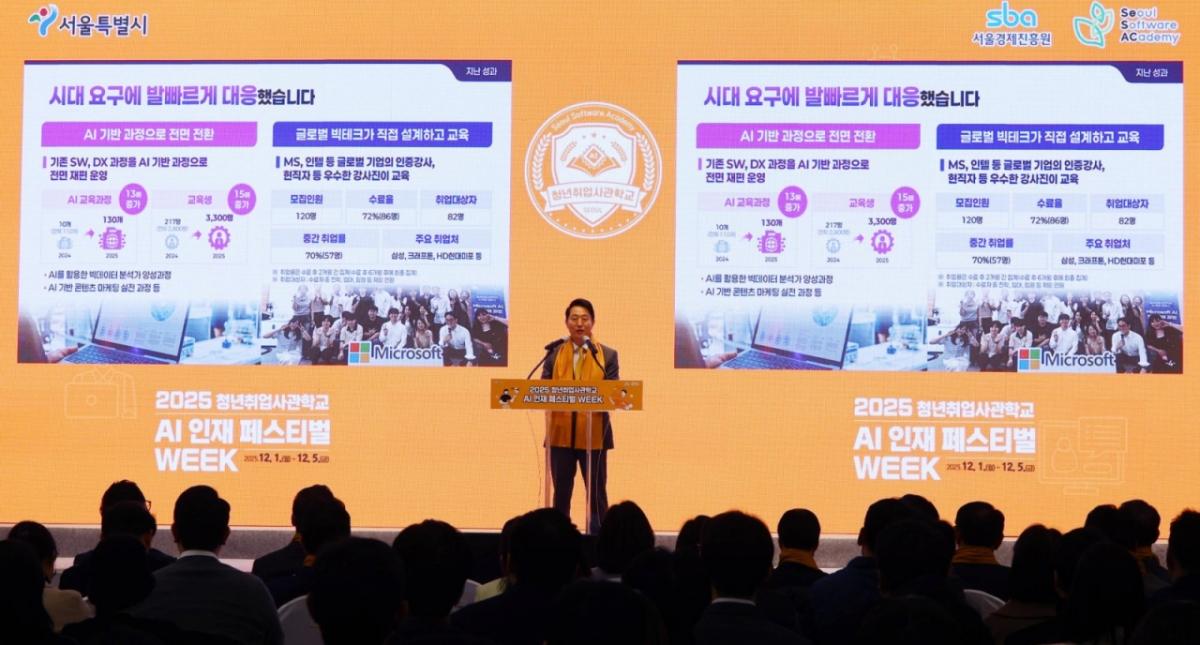 오 시장은 "2021년 출범한 청년취업사관학교는 청년의 진로를 넓히고 기업의 인재난을 덜면서 서울 경제의 미래를 준비해 온 실전형 교육기관"이라며 "연간 교육인원이 2021년 556명에서 올해 3300명으로6배가 늘었는데 구호가 아니라 숫자로 증명한 성과"라고 강조했다.