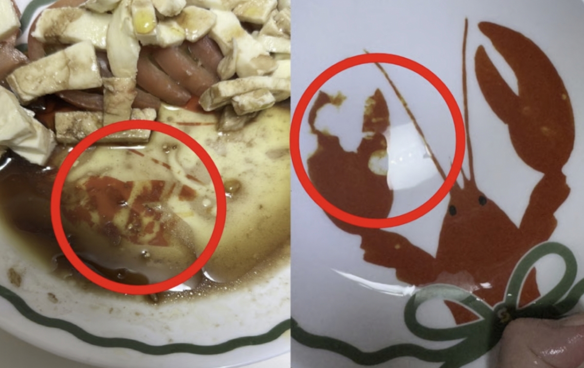 한 누리꾼은 "피자 먹을 때 핫소스를 뿌렸더니 이렇게 됐다. 너무한 거 아닌가"라며 접시 위에 프린팅된 랍스터 집게가 녹아 없어진 사진을 공유했다. 또 다른 누리꾼도 "써브웨이 랍스터 접시에 뭐 먹지 마세요. 잉크 벗겨진다"며 역시 음식이 담긴 접시 위 프린팅이 녹아 없어진 사진을 올렸다.