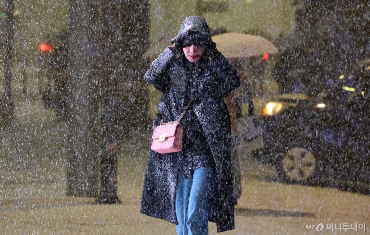 ![[서울=뉴시스] 최진석 기자 = 서울·인천·경기·강원 대설주의보 발효된 4일 서울 중구 도심에서 한 시민이 발걸음을 재촉하고 있다. 2025.12.04. myjs@newsis.com /사진=최진석](https://thumb.mt.co.kr/cdn-cgi/image/f=avif/21/2025/12/2025120420003484205_1.jpg)